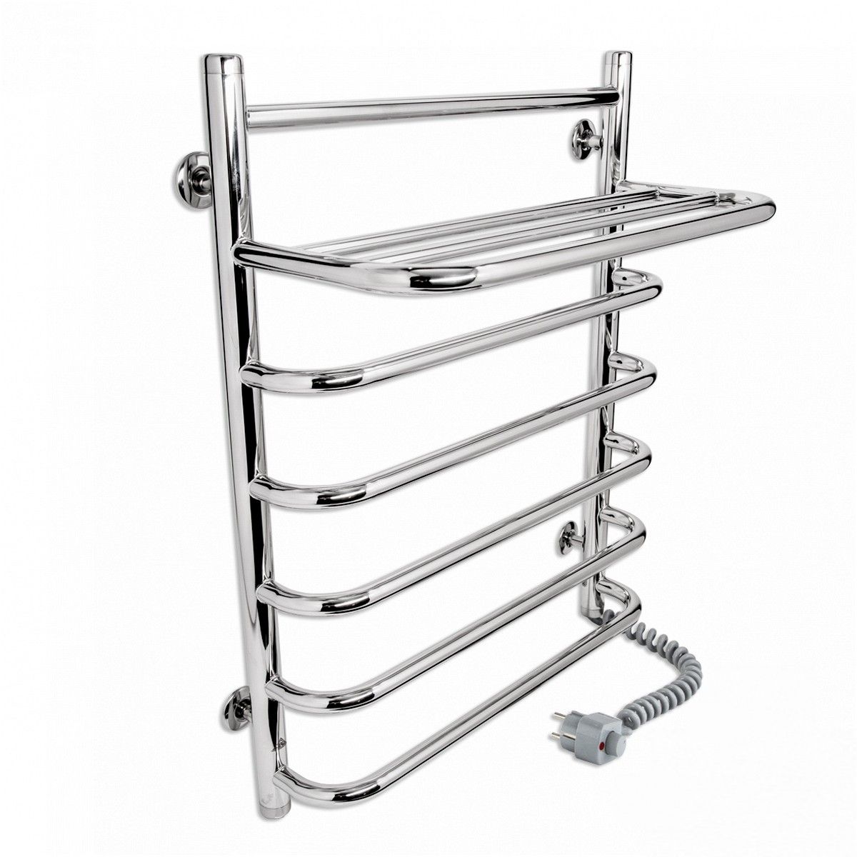 Электрический полотенцесушитель из нержавеющей стали с сухим нагревательным элементом Laris Стандарт ЧК5 500 х 660 Э R3 с полкой (77700076)