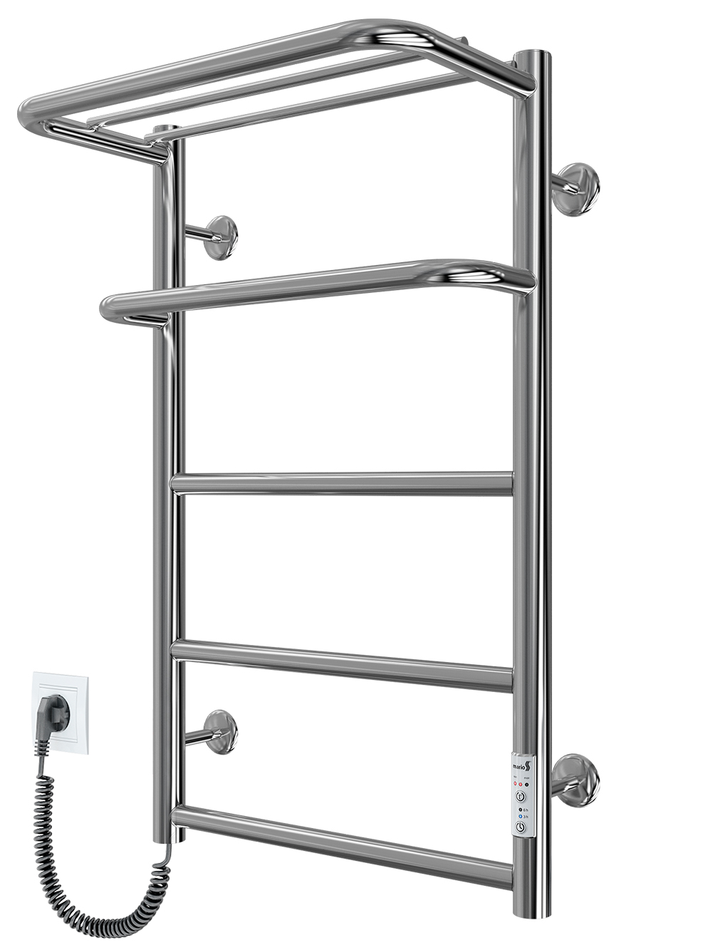 Электрический полотенцесушитель из нержавеющей стали с сухим нагревательным элементом Laris Стандарт ЧК5 500 х 660 Э R3 с полкой (77700076)