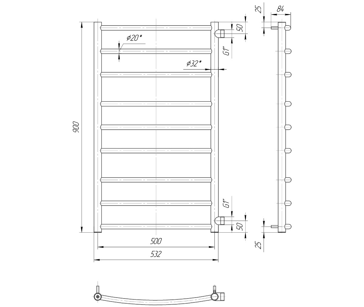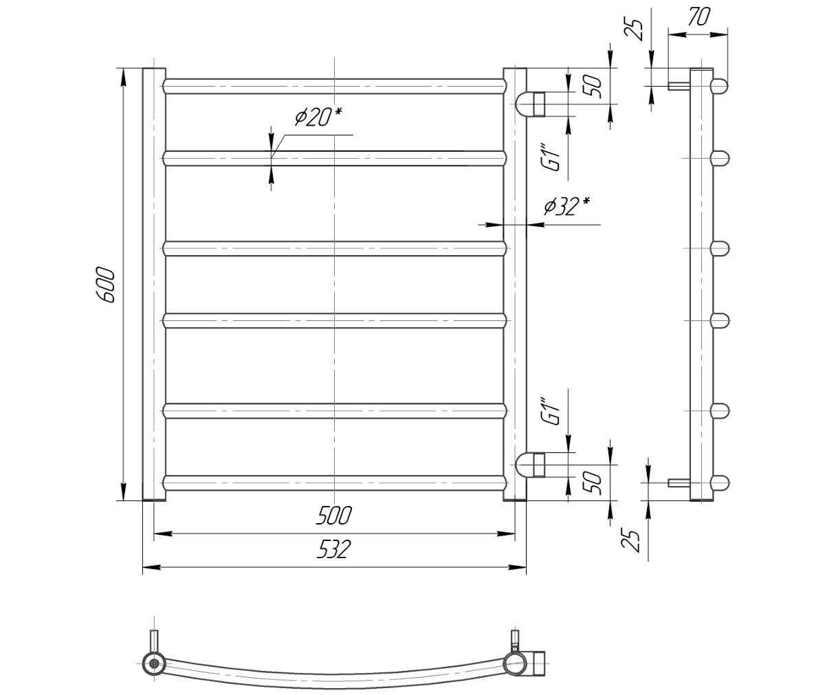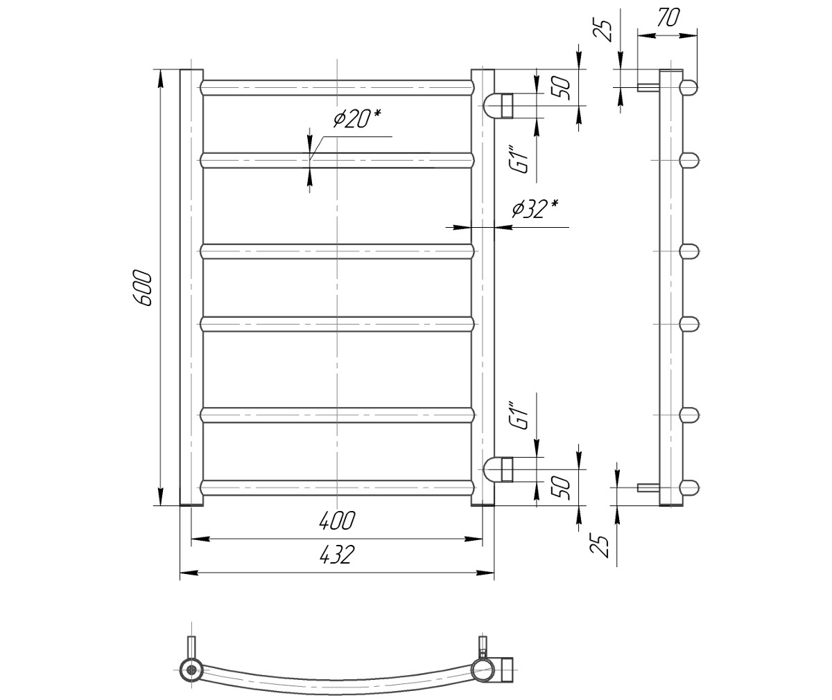 Водяной полотенцесушитель из нержавеющей стали Mario Классик Б/П 1″