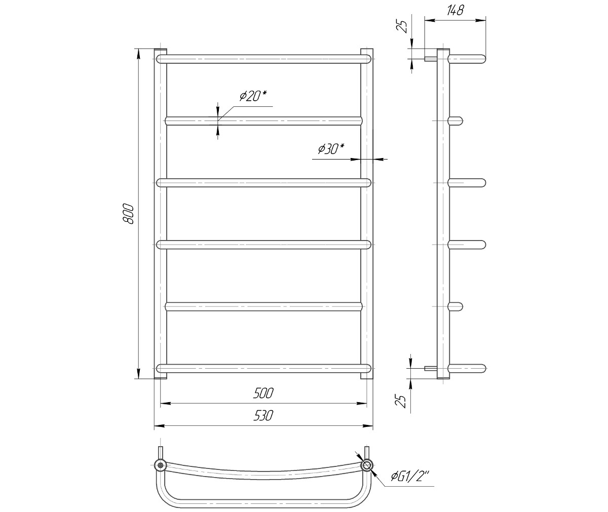 Водяной полотенцесушитель из нержавеющей стали Mario Люкс HP