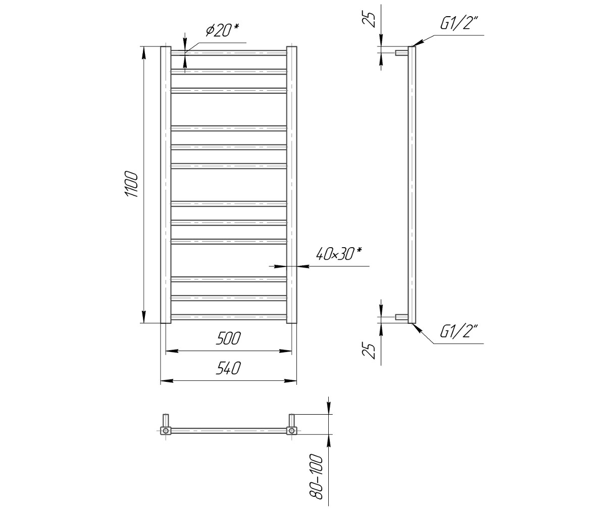 Водяной полотенцесушитель из нержавеющей стали Mario Премиум Классик