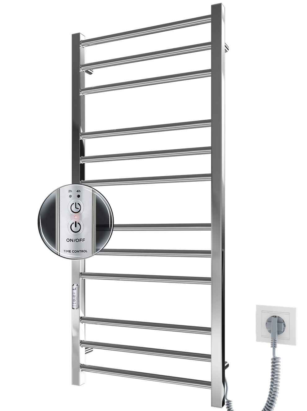 Электрический полотенцесушитель из нержавеющей стали с сухим нагревательным элементом Mario Премиум Классик-IT 1100×500/80 с таймером