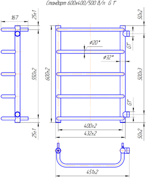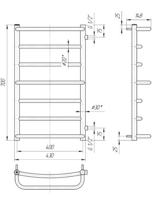 Водяной полотенцесушитель из нержавеющей стали Mario Премиум Люкс