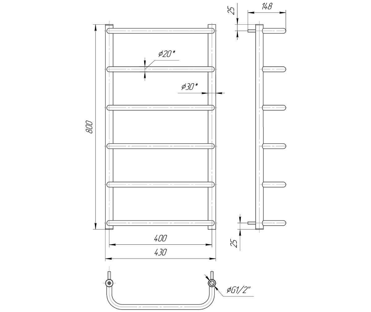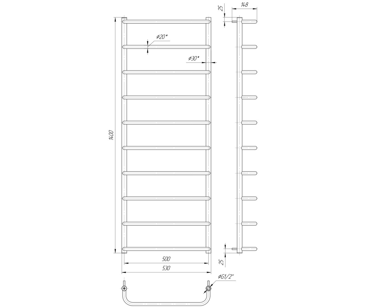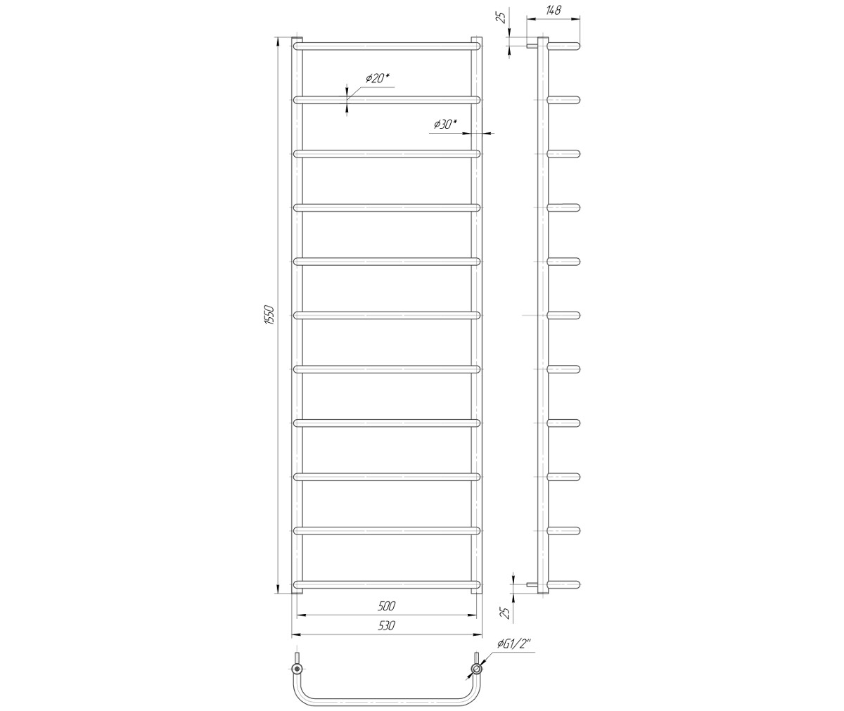 Водяной полотенцесушитель из нержавеющей стали Mario Стандарт HP