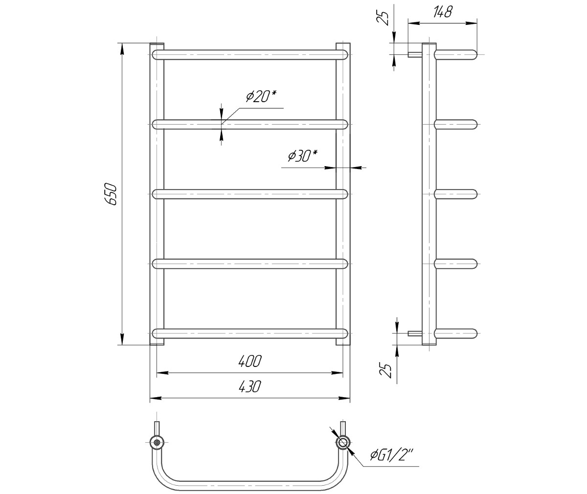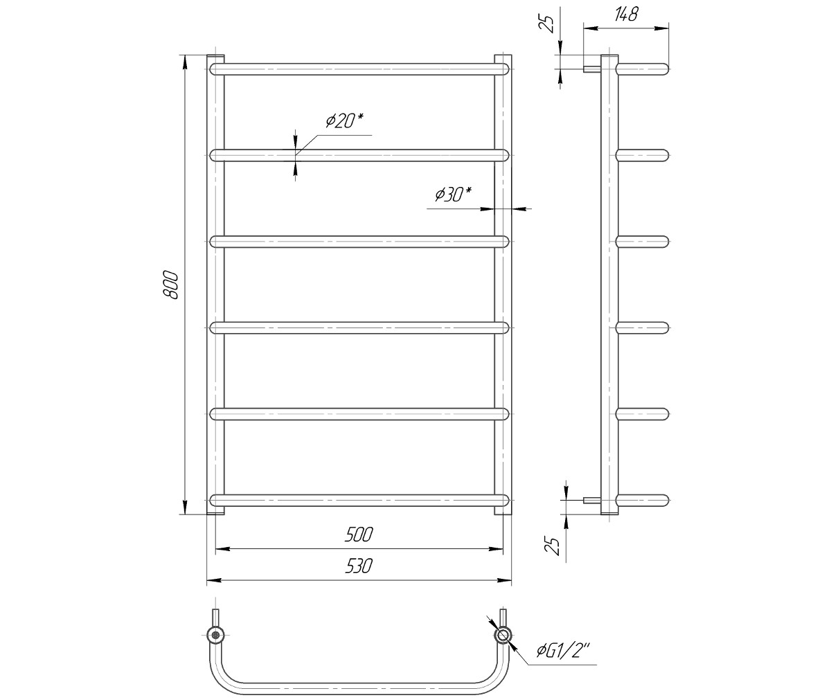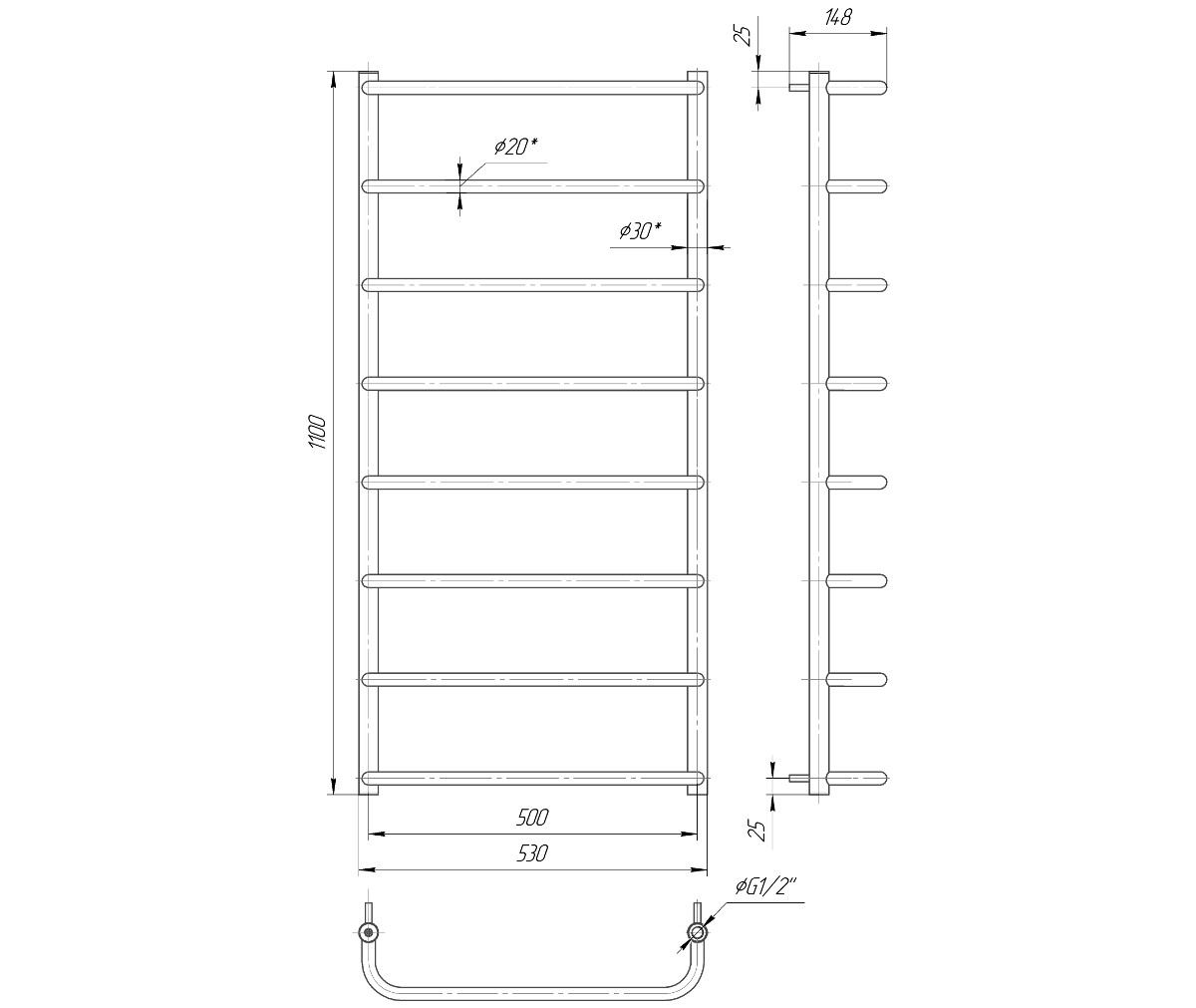 Водяной полотенцесушитель из нержавеющей стали Mario Стандарт HP