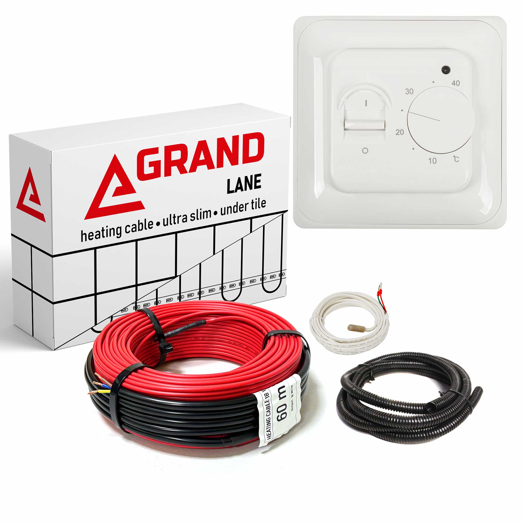 Комплект кабель Grand Lane GL-cab 18W + механический терморегулятор RTC70. Комплект теплого пола в слой плиточного клея или в стяжку.