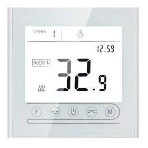 Корпус терморегулятора выполнен из специального электротехничского ABS пластика, который сохраняет свой цвет и внешний вид под воздействие солнечного света. Поверхность – гладкая, глянцевая, прекрасно смотрится в современном интерьере. Экран терморегулятора отображают всю необходимую информацию для пользователя (время, температуру, день недели и тд.). Терморегулятор имеет функцию самодиагностики и сигнализирует о возможной неисправности.