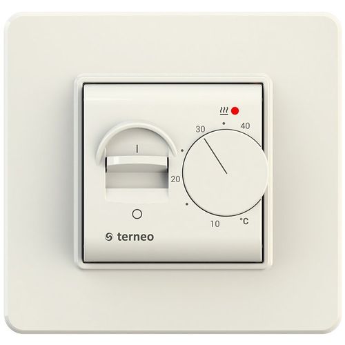 Терморегулятор для теплого пола Terneo mex (слоновая кость) механический терморегулятор для теплого пола с выносным датчиком температуры на проводе используется для управления электрическим теплым полом (мат, кабель, инфракрасная пленка) и прочими системами электроотопления. Регулировка температуры происходит путем поворота колесика на требуемое значение температуры.