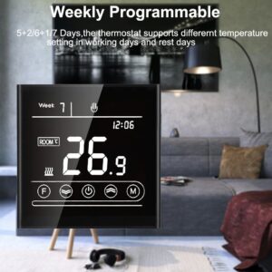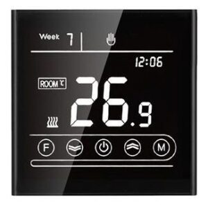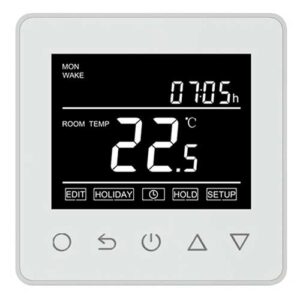 Корпус терморегулятора выполнен из специального электротехничского ABS пластика, который сохраняет свой цвет и внешний вид под воздействие солнечного света. Экран терморегулятора отображают все необходимую информацию для пользователя (время, температуру, день недели и тд.). Терморегулятор имеет функцию самодиагностики и сигнализирует о возможной неисправности.