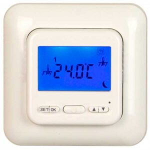 Комплект теплого пола на основе двухжильного нагревательного кабеля Prime Electric PC-20 с программируемым терморегулятором, также в комплекте гофрированная трубка, монтажная лента и датчик температуры пола. Применяется для монтажа в стяжку 3-5 см, штробу или непосредственно в слой плиточного клея (под толстый керамогранит). Кабель имеет внутреннюю тефлоновую FEP изоляцию способную выдержать перегрев до 205 градусов. Программируемый терморегулятор позволяет сэкономить до 50% электроэнергии.